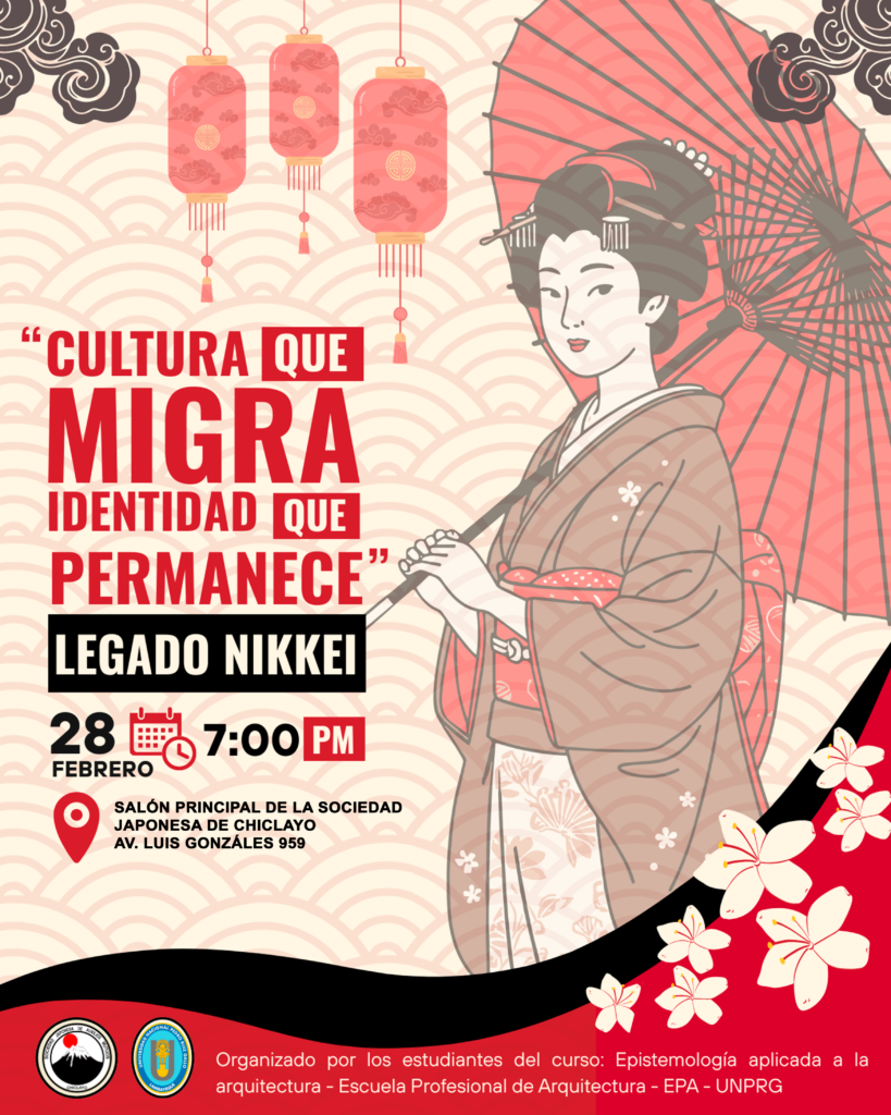 En febrero tendremos la exposición cultural: «Cultura que migra, identidad que permanece-Legado Nikkei» desarrollada por los estudiantes del curso Epistemología aplicada a la arquitectura de la Universidad Nacional Pedro Ruiz Gallo, curso a cargo de la Dra. Arq. Aurora Marchena Tafur.